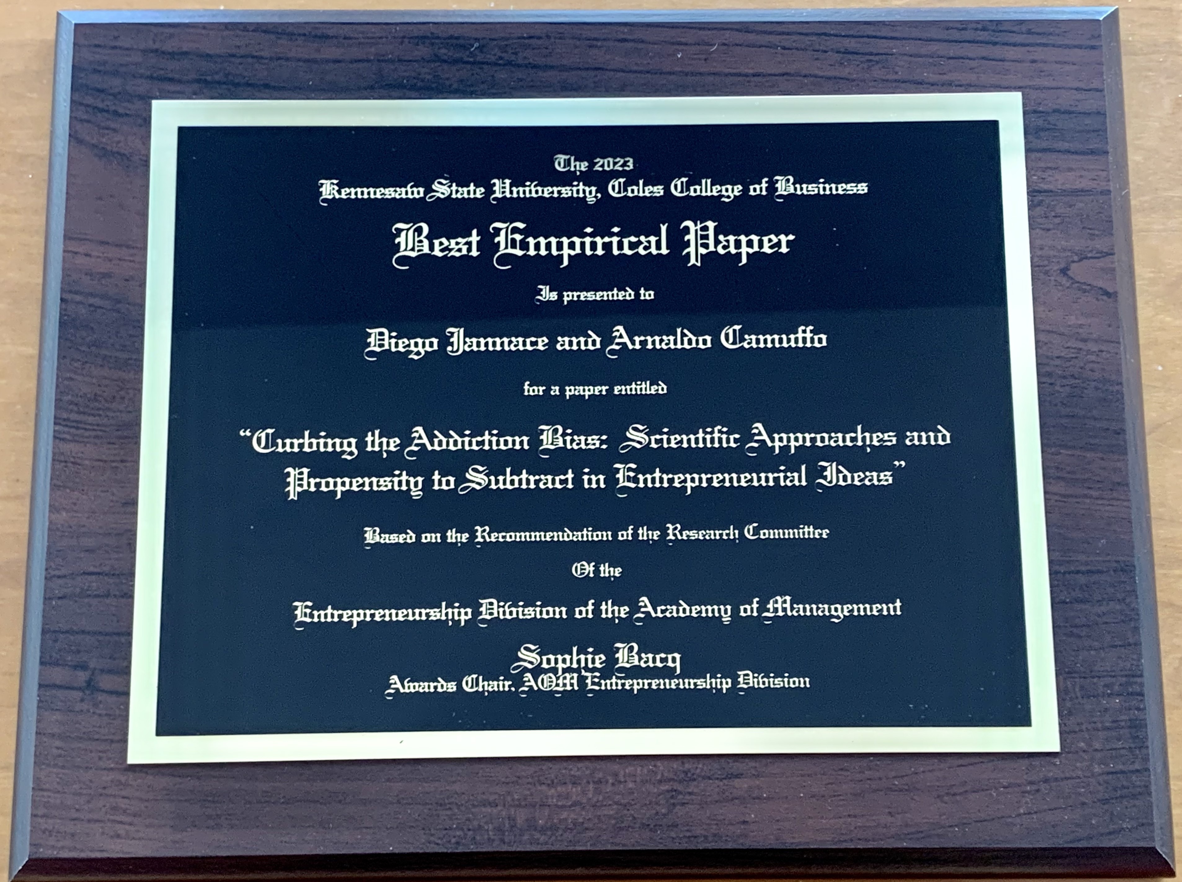 Diego Jannace and Arnaldo Camuffo receive Best Empirical Paper Award at AoM 2023